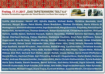 Wie im Vorjahr wurde die Kunstauktion zugunsten des Yehudi Menuhin Live Music Now Leipzig e.V. veranstaltet. Über 16.000 EUR können nun zwischen Künstlern - denen unser ganz besonderer Dank gilt – und Verein geteilt werden. Ohne die vielen eifrigen Bieter, die engagierten Auktionatoren und das großartige Engagement sowie die gute Zusammenarbeit aller Beteiligten wäre das nicht möglich gewesen. Herzlichen Dank dafür!